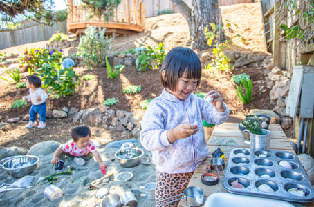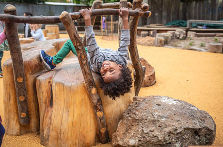 The mission of each of these projects was to transform the existing centers, which were filled with plastic play equipment, concrete paving throughout, and little natural elements, into spaces that connect children to nature, utilizing only natural materials and engaging discovery, curiosity, and exploration. The target age group was 1 to 5 years of age, so special consideration was taken to create a balance between safety and challenging play.