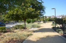 This new public park and school are located in a high-density, transit-oriented redevelopment area. The City’s new park includes a walking trail that loops around the park, picnic areas, play structures, community gardens, and restroom facilities. The school-shared soccer field and basketball courts provide recreational areas for students. The park amenities offer open space for active and passive recreation and community-gathering for new residents.