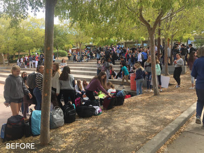 In this renovation project, BASE worked with Woodside High School administration to modify their existing courtyard amphitheater space to work better for their students. Due to the volume of students regularly gathering under the shade of the existing mature trees, a space once covered with lawn and planting had become a compacted and run down.